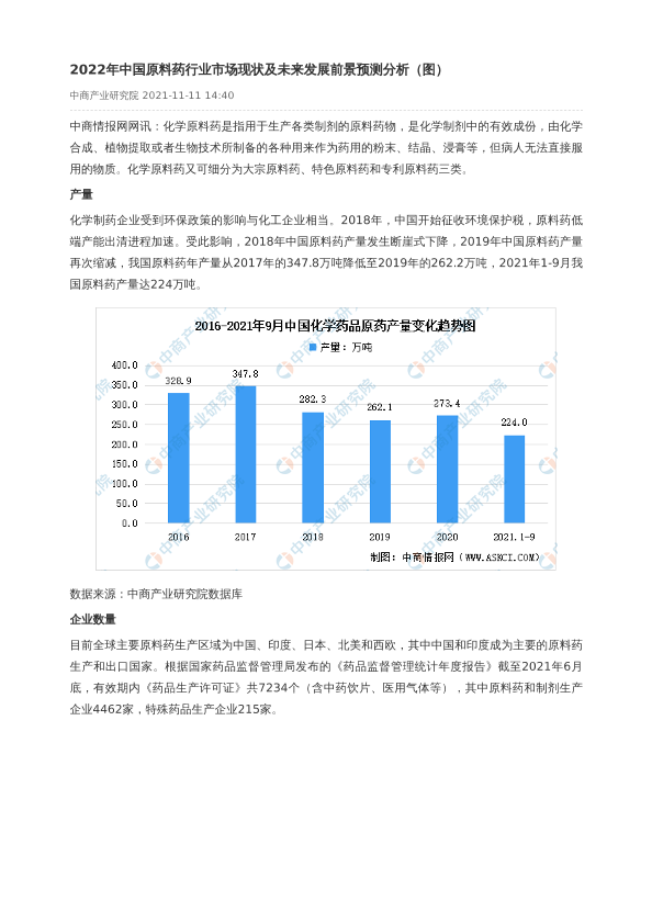 【中商产业研究院】【202111】2022年中国原料药行业市场现状及未来发展前景预测分析-3页