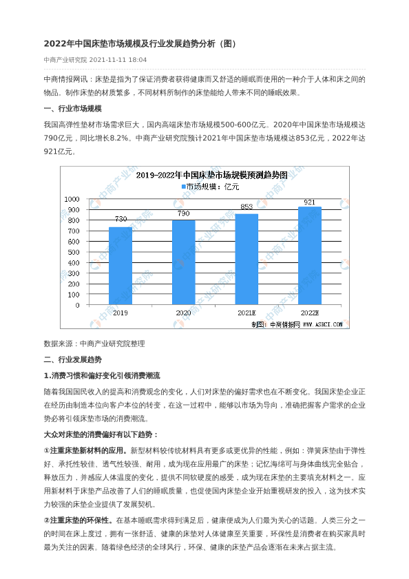 【中商产业研究院】【2022】2022年中国床垫市场规模及行业发展趋势分析-2页