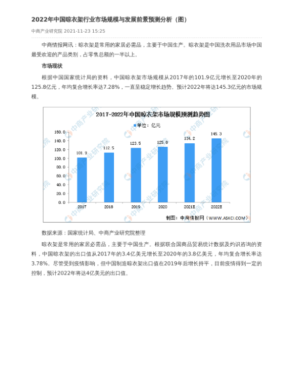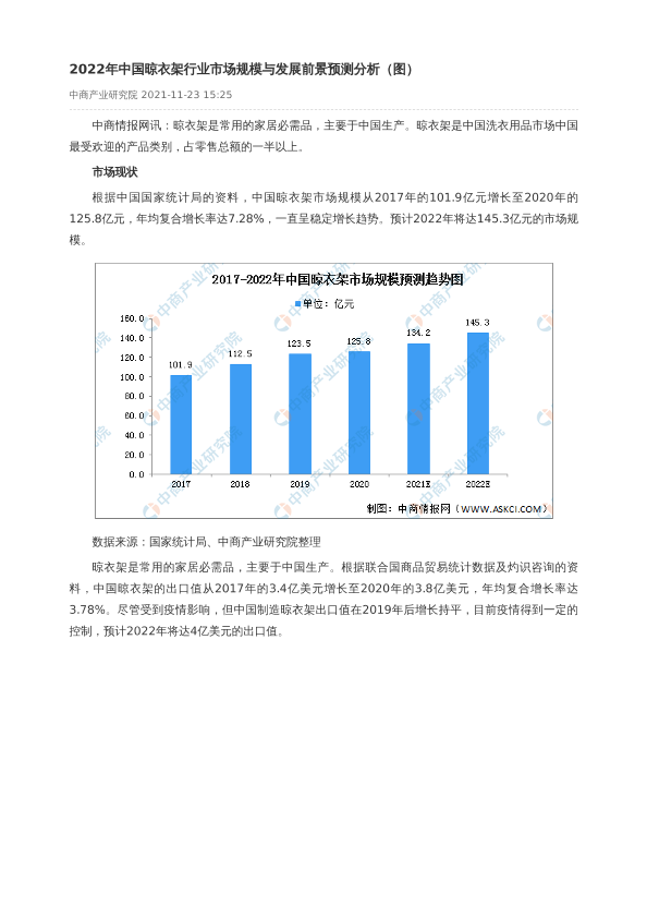 【中商产业研究院】【2022】2022年中国晾衣架行业市场规模与发展前景预测分析-2页