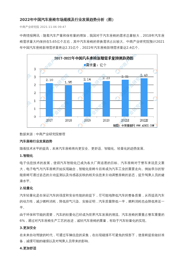 【中商产业研究院】【20211106】2022年中国汽车座椅市场规模及行业发展趋势分析-2页