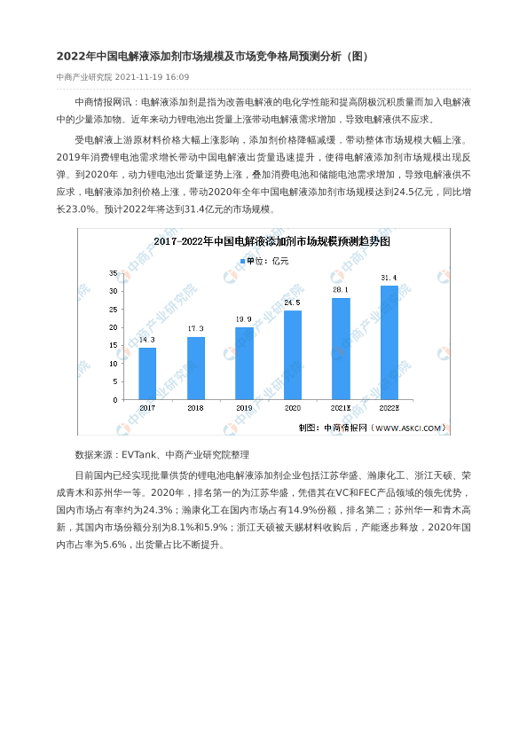 【中商产业研究院】【20211119】2022年中国电解液添加剂市场规模及市场竞争格局预测分析(图)-2页