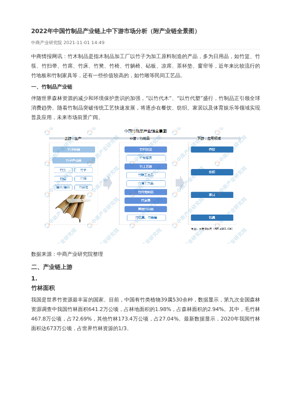 【中商产业研究院】【20211101】2022年中国竹制品产业链上中下游市场分析-13页