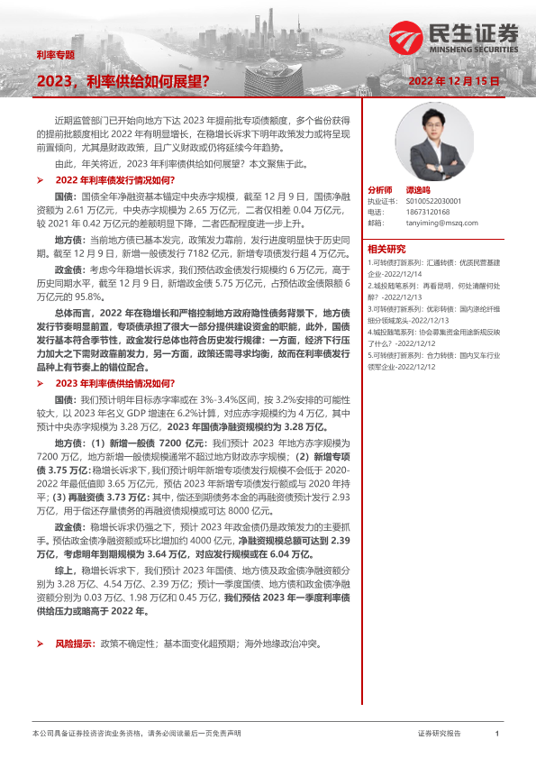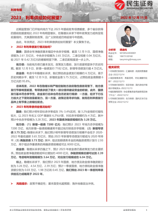 【民生证券】【20221215】利率专题:2023,利率供给如何展望?-20页