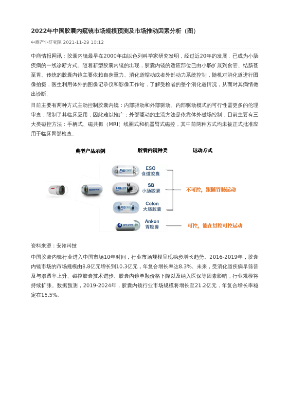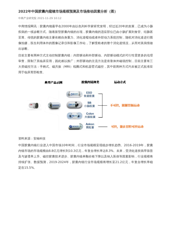 【中商产业研究院】【2022】2022年中国胶囊内窥镜市场规模预测及市场推动因素分析-2页