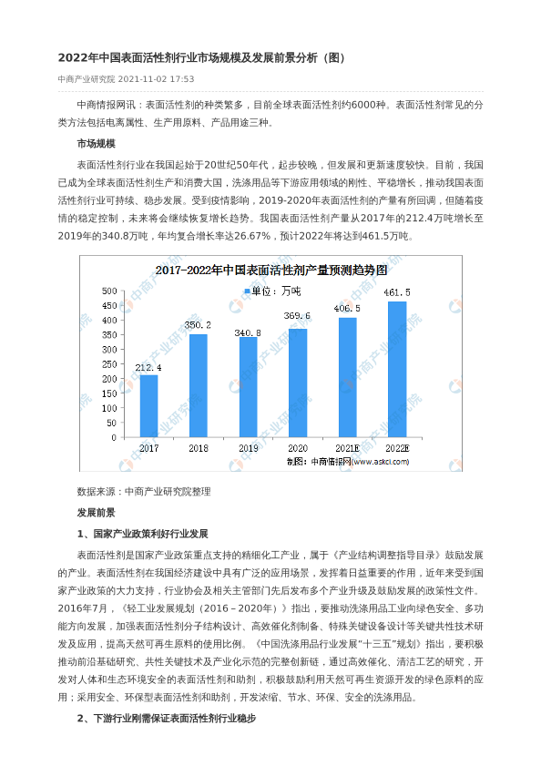 【中商产业研究院】【2022】2022年中国表面活性剂行业市场规模及发展前景分析-2页