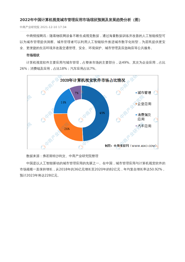 【中商产业研究院】【20211210】2022年中国计算机视觉城市管理应用市场现状预测及发展趋势分析(图)-2页