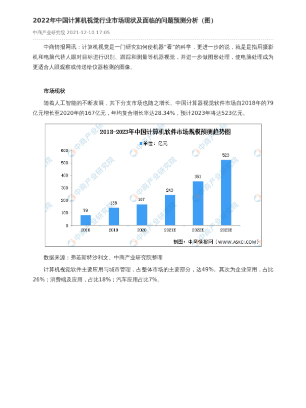 【中商产业研究院】【20211210】2022年中国计算机视觉行业市场现状及面临的问题预测分析-2页