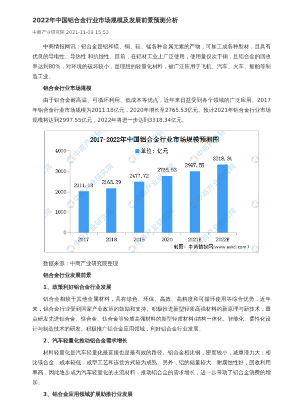 【中商产业研究院】【2022】2022年中国铝合金行业市场规模及发展前景预测分析-2页