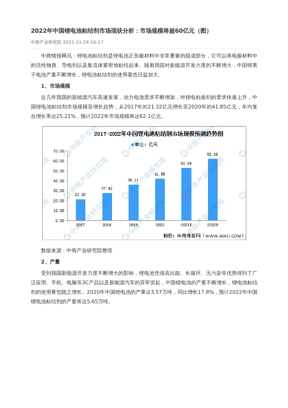 【中商产业研究院】【2022】2022年中国锂电池粘结剂市场现状分析:市场规模将超60亿元(图)-2页