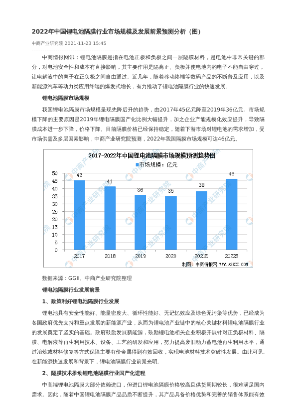 【中商产业研究院】【20211123】2022年中国锂电池隔膜行业市场规模及发展前景预测分析-2页