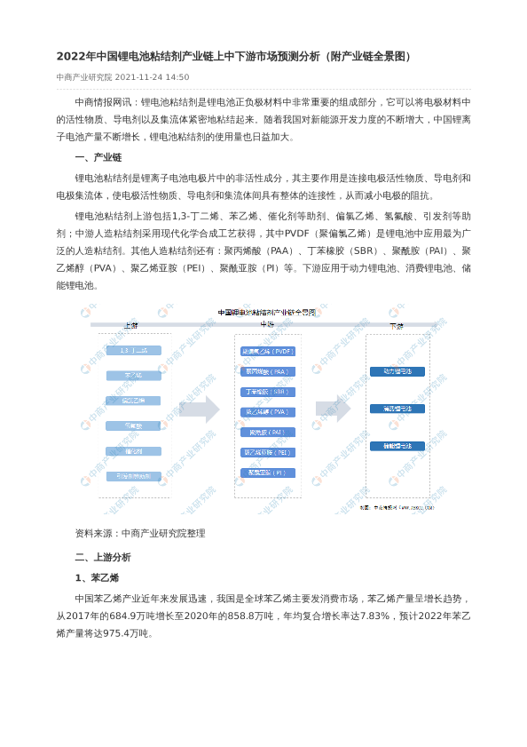 【中商产业研究院】【20211124】2022年中国锂电池粘结剂产业链上中下游市场预测分析-10页