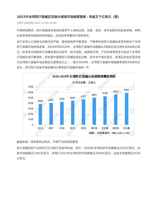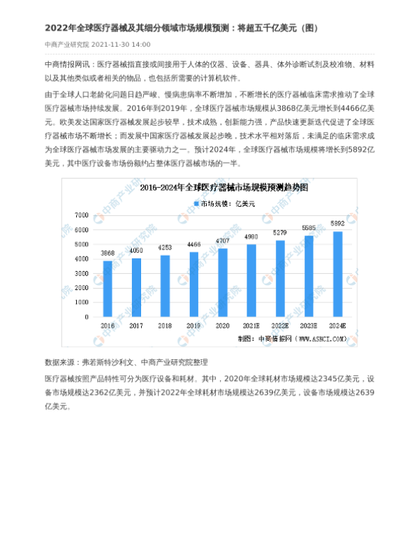 【中商产业研究院】【2022】2022年全球医疗器械及其细分领域市场规模预测:将超五千亿美元(图)-2页