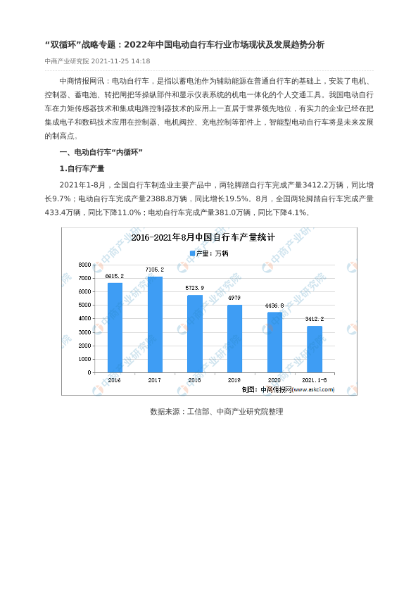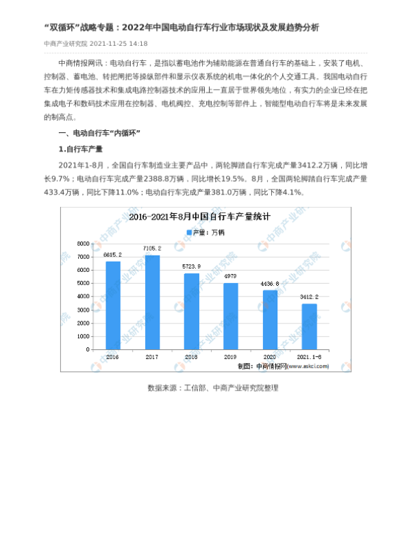 【中商产业研究院】【20211125】“双循环”战略专题:2022年中国电动自行车行业市场现状及发展趋势分析-4页
