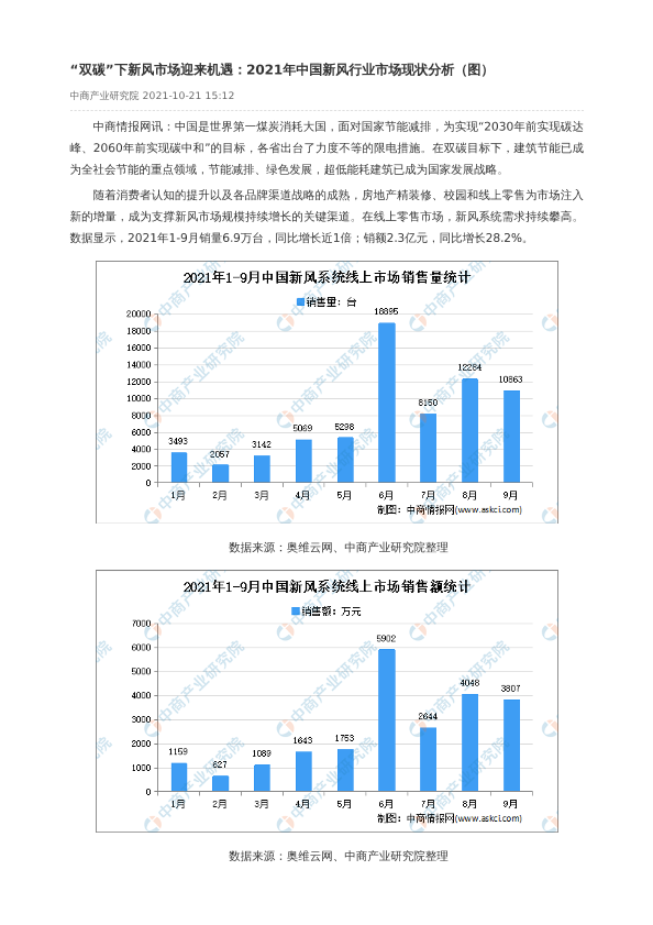 【中商产业研究院】【2021】“双碳”下新风市场迎来机遇:2021年中国新风行业市场现状分析-2页