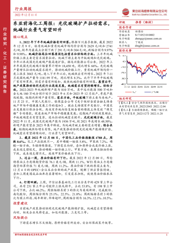 【东亚前海证券】【20221211】化工周报:光伏玻璃扩产拉动需求,纯碱行业景气有望回升-23页