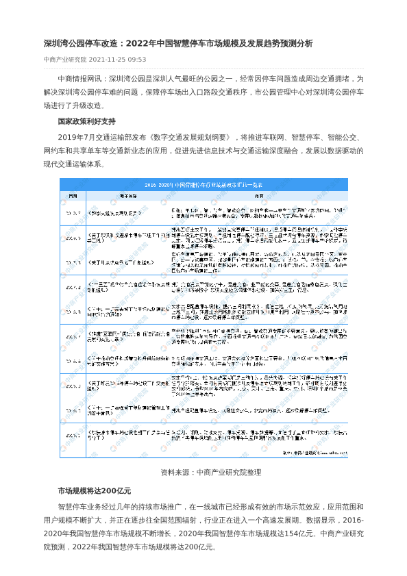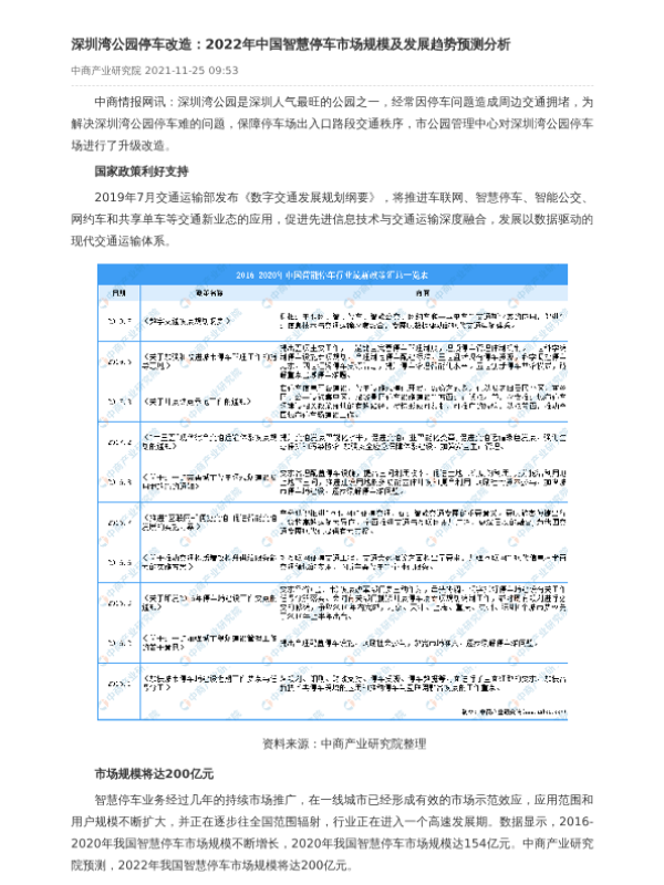 【中商产业研究院】【2022】深圳湾公园停车改造:2022年中国智慧停车市场规模及发展趋势预测分析-3页