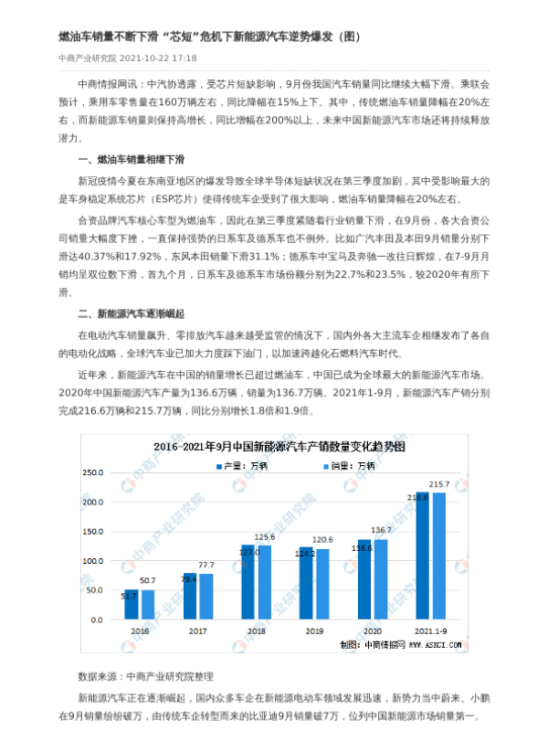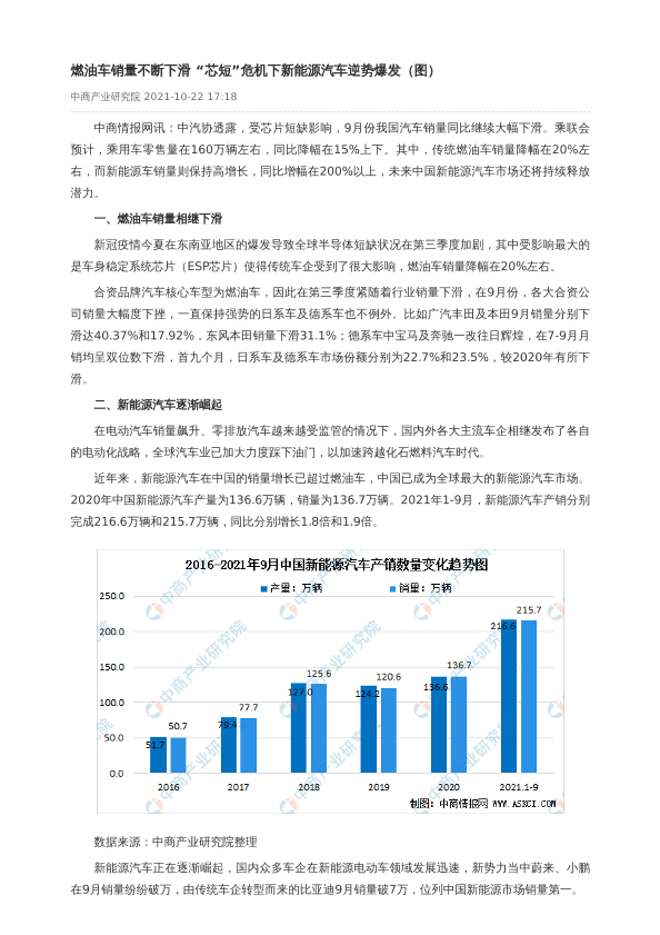 【中商产业研究院】【20211022】燃油车销量不断下滑 “芯短”危机下新能源汽车逆势爆发(图)-3页