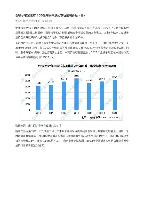 【中商产业研究院】【2022】金嗓子喉宝退市!50亿咽喉中成药市场波澜再起(图)-3页