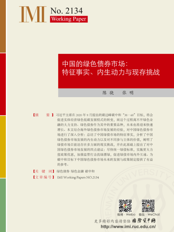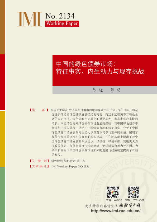 【国际货币网】【2021】中国的绿色债券市场:特征事实、内生动力与现存挑战-32页