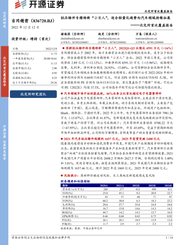 【开源证券】【20221212】北交所首次覆盖报告:铝压铸件专精特新“小巨人”,迎合轻量化趋势向汽车领域持续拓展-14页