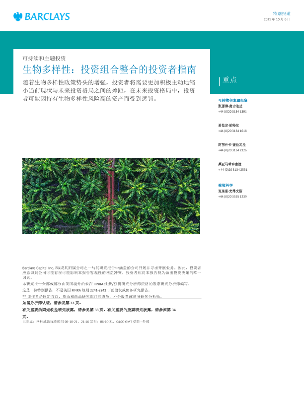 【巴克莱】【20211006】欧洲投资策略生物多样性:投资组合整合的投资者指南-39页