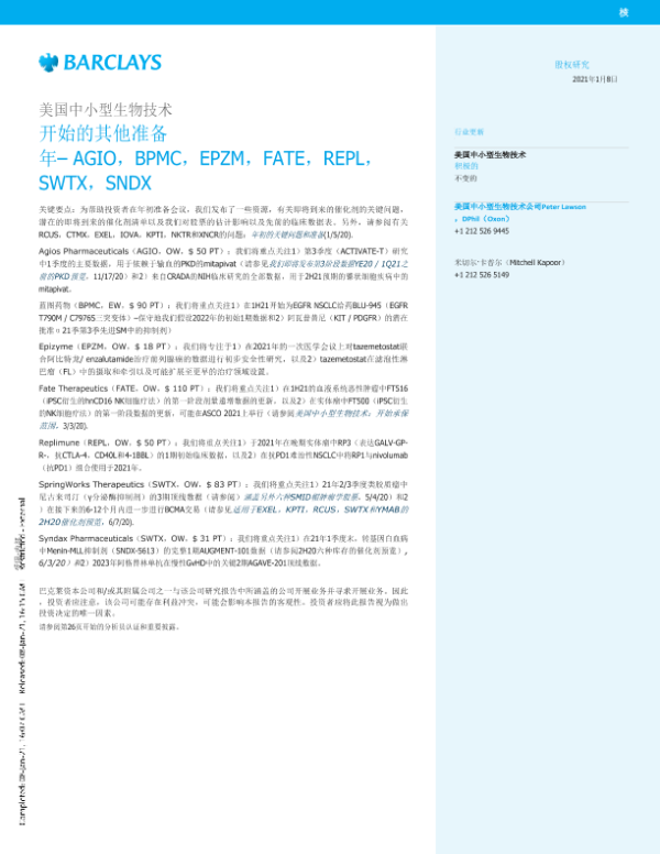 【巴克莱】【20210108】美股生物科技行业美国中小型生物科技企业:为年初做额外准备-33页