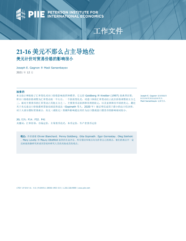 【彼得森国际经济研究所】【2021】美元不是那么占主导地位:美元计价对贸易价格的影响很小-26页