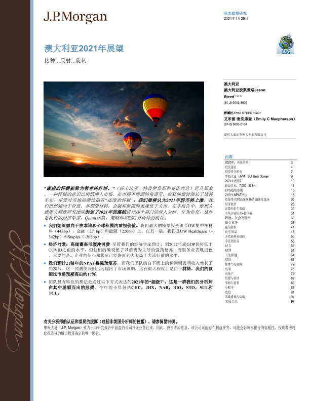 【J.P. Morgan】【202101】亚太地区股票策略之澳大利亚2021年股市策略展望-107页