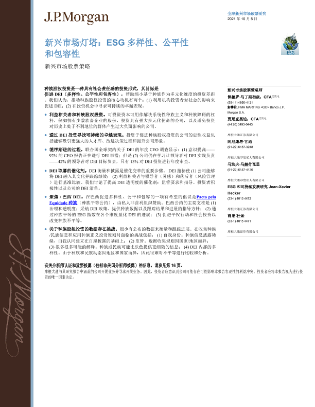 【J.P. Morgan】【20211005】新兴市场投资策略ESG多样性、公平性和包容性-21页