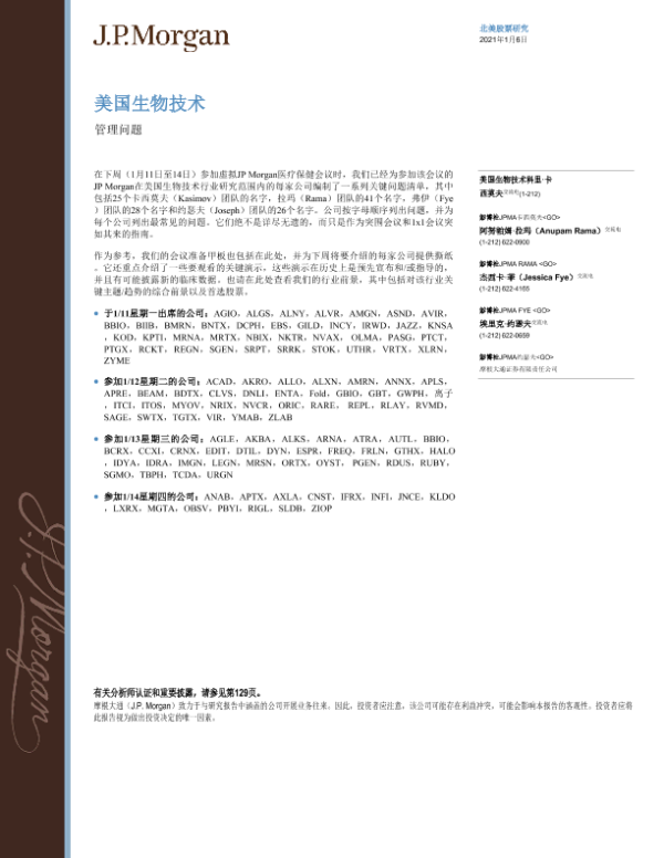 【J.P. Morgan】【20210106】美股生物科技行业:管理问题-134页