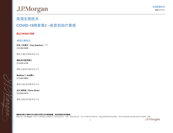 【J.P. Morgan】【202101】美股生物科技行业:COVID19纲要第3卷——疫苗和治疗概况-111页