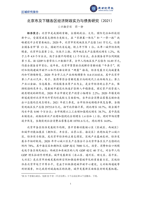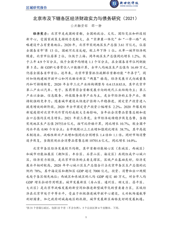 【新世纪评级】【2021】北京市及下辖各区经济财政实力与债务研究-31页
