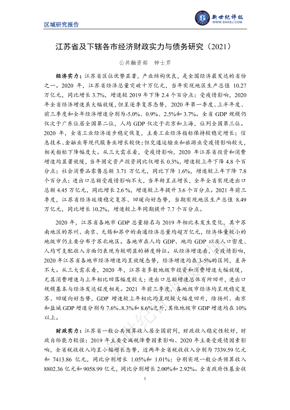 【新世纪评级】【2021】江苏省及下辖各市经济财政实力与债务研究-27页