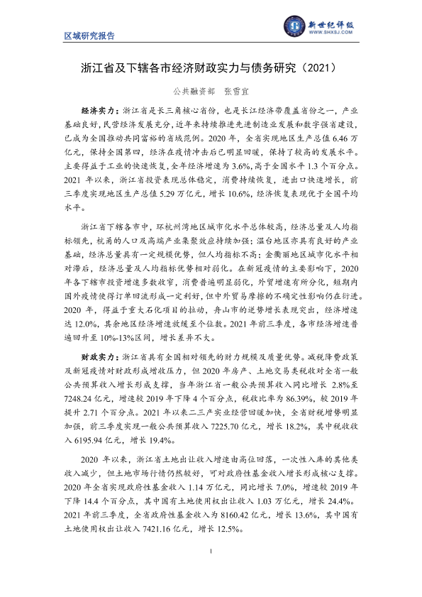 【新世纪评级】【2021】浙江省及下辖各市经济财政实力与债务研究-29页