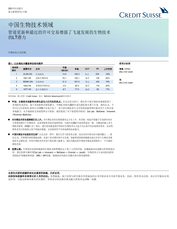 【瑞信】【2021】中国生物科技行业:近期的许可证交易突出了高科技生物技术的长期潜力-35页