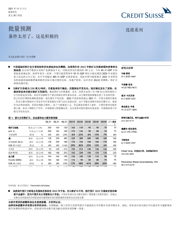 【瑞信】【20211101】亚太地区金属及采矿业大部分预测:条件很差,这是乐观的-46页