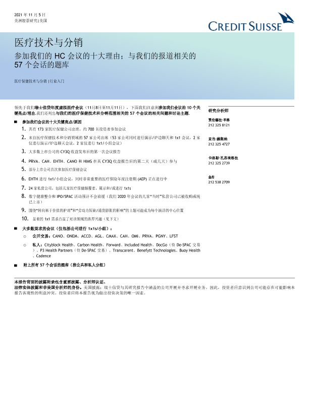 【瑞信】【20211105】参加我们医疗会议的十大理由;与我们的报道相关的57个会议的问题库-148页