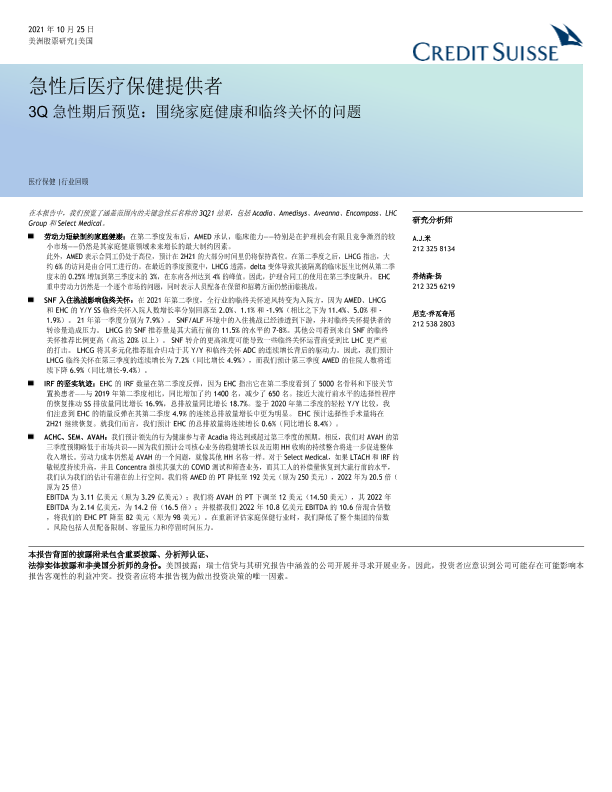 【瑞信】【20211025】美股医疗保健行业第三季度急性期后预览:关于家庭健康和临终关怀的问题-38页