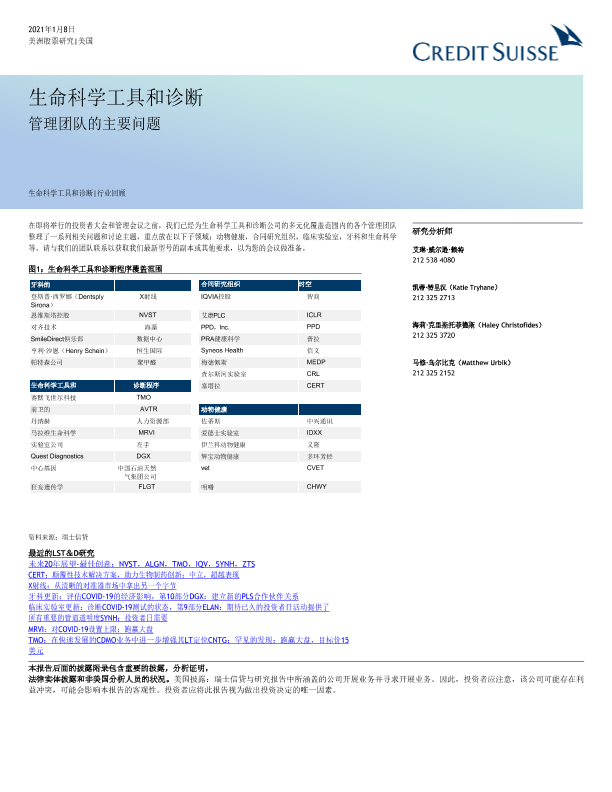 【瑞信】【2021】美股医疗保健行业美国生命科学与诊断:管理团队的首要问题-68页