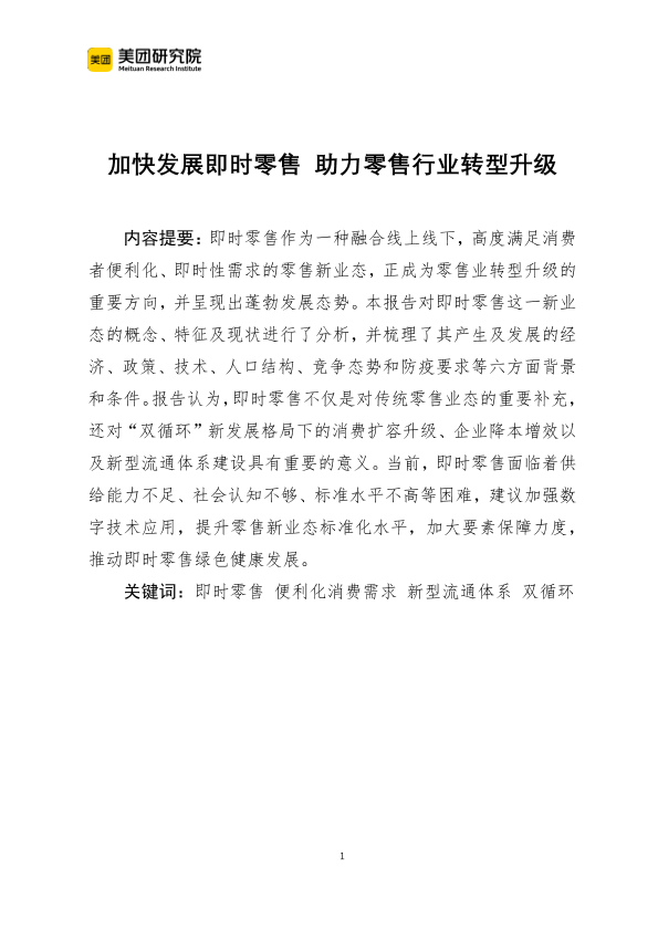 【美团研究院】【2022】加快发展即时零售 助力零售行业转型升级-22页