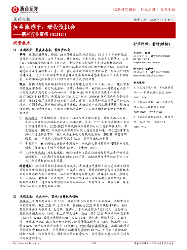 【浙商证券】【20221211】医药行业周报:复盘流感季,看投资机会-18页