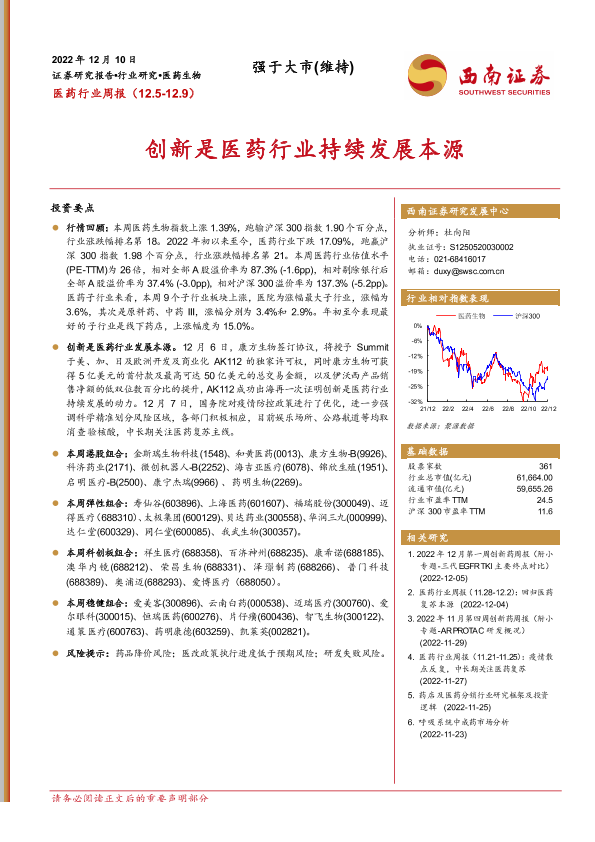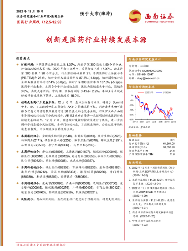 【西南证券】【20221210】医药行业周报:创新是医药行业持续发展本源-44页