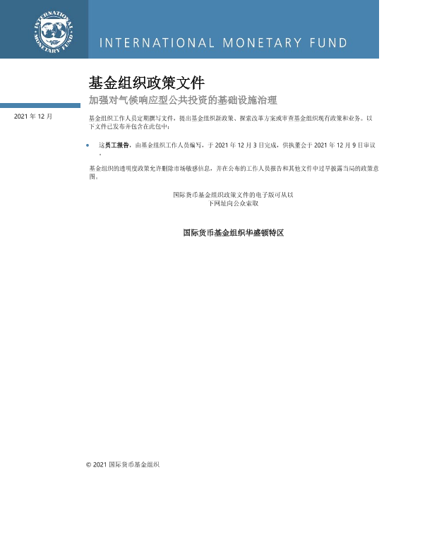 【IMF】【202112】加强对气候响应型公共投资的基础设施治理-38页