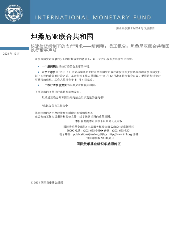 【IMF】【202112】坦桑尼亚联合共和国:根据快速信贷融资申请付款 - 新闻稿;员工报告;坦桑尼亚联合共和国执行主任的声明-20页