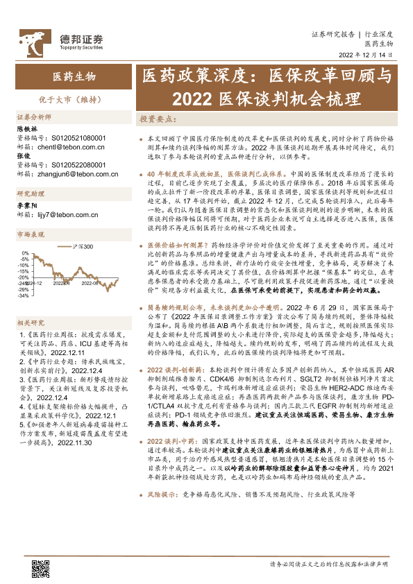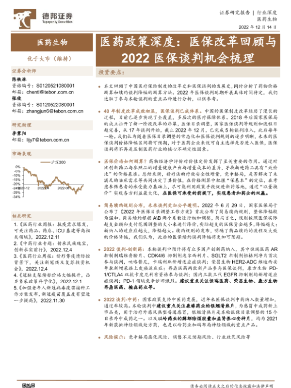 【德邦证券】【20221214】医药行业政策深度:医保改革回顾与2022医保谈判机会梳理-32页