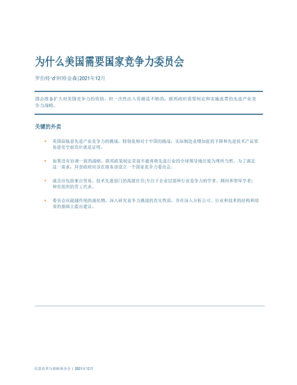 【ITIF】【202112】为什么美国需要国家竞争力委员会-12页