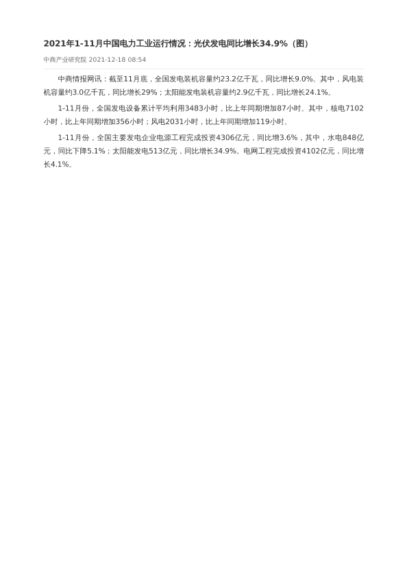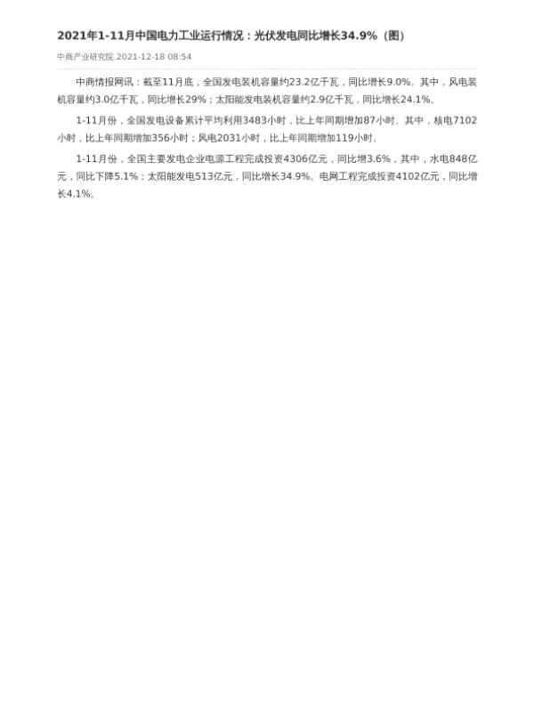 【中商产业研究院】【20211218】2021年1-11月中国电力工业运行情况-2页