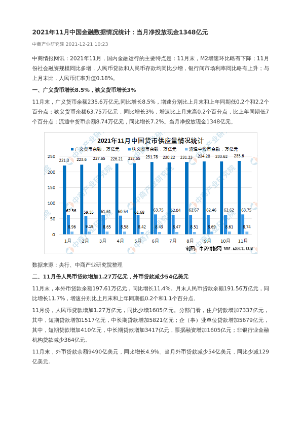 【中商产业研究院】【20211221】2021年11月中国金融数据情况统计-5页