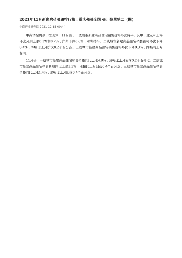 【中商产业研究院】【2021】2021年11月新房房价涨跌排行榜:重庆领涨全国 银川位居第二(图)-4页