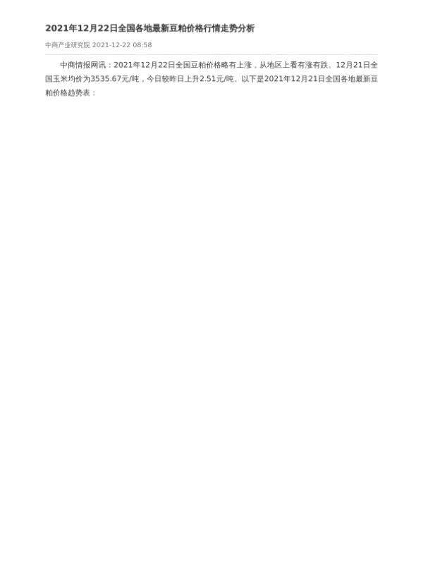 【中商产业研究院】【20211222】2021年12月22日全国各地最新豆粕价格行情走势分析-3页